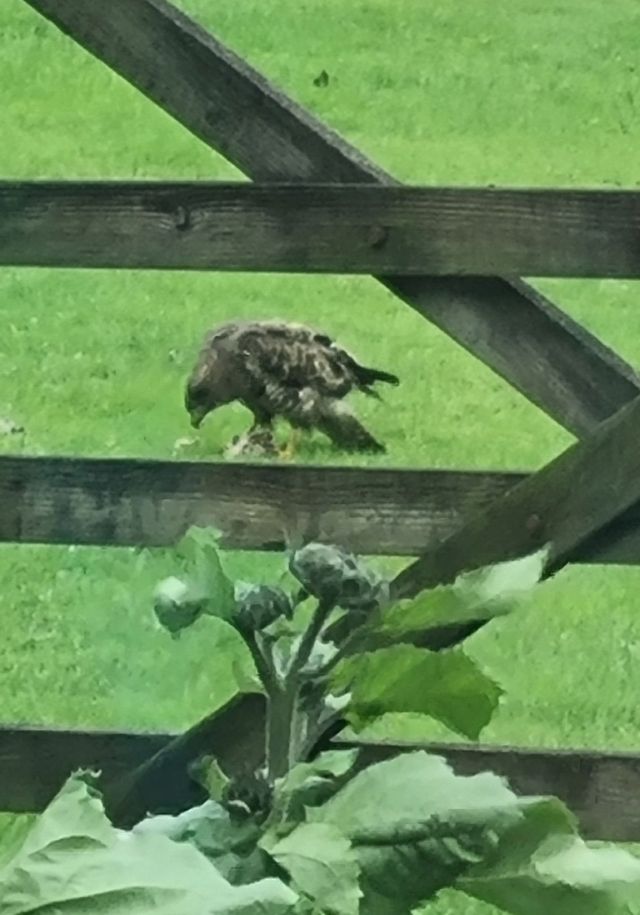 I took these pictures through the window of our resident buzzard who decided to feed on the grass along side the bottom lake. It is often seen flying around the area.