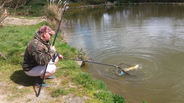 Early spring has encouraged the fish to feed and all species are being caught in good numbers. Malcolm and Spence down from Liverpool for a few days had a brilliant first day over 20 wild carp between them, up to 12lbs. Colin caught this lovely perch from the bottom lake on Friday. The gentleman in the photograph with the carp caught four within the first 90 minutes of his first visit here this being one of the smaller ones. I think he will be back.